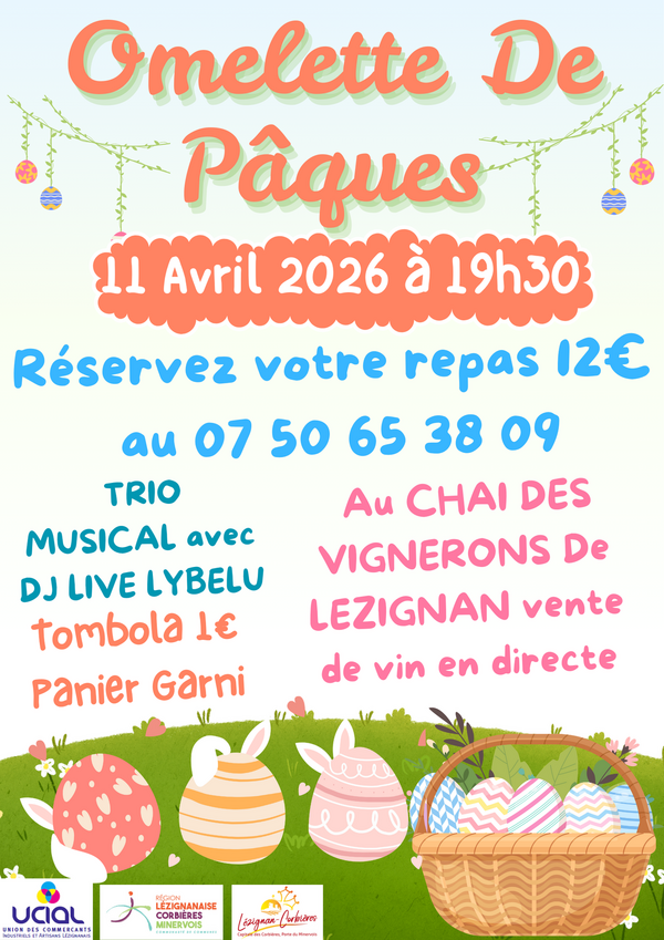 OMELETTE DE PAQUES ORGANISÉ PAR L'UCIAL SAMEDI 11 AVRIL 2026 RESERVEZ VOTRE REPAS
